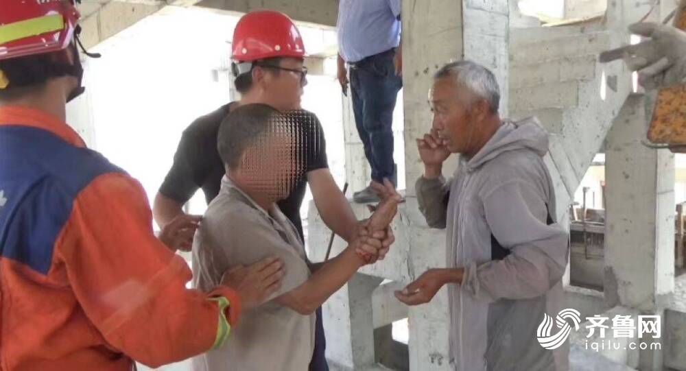 辖区消防人员迅速到达现场,经现场侦查发现,手背卡住的是一名中年男性工人,右手小拇指挤在了塔吊吊钩绞盘的传送轮与钢丝绳之间,无法取出,现场情况紧急,由于吊钩绞盘悬在半空中,使救援难度大大增加,针对现场情况,指挥员立即确定救援方案,一组人员用安全绳一端绑扎在吊钩绞盘上另一端绕混凝土柱子由消防救援人员拉住固定。在做好各项保护措施后,救援人员利用液压钳对吊钩钢丝绳进行拆除,拆除后被困人员右手小拇指顺利取出。